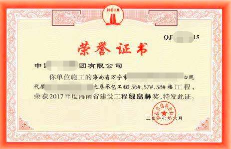 海南省建设工程的最高奖项:绿岛杯奖